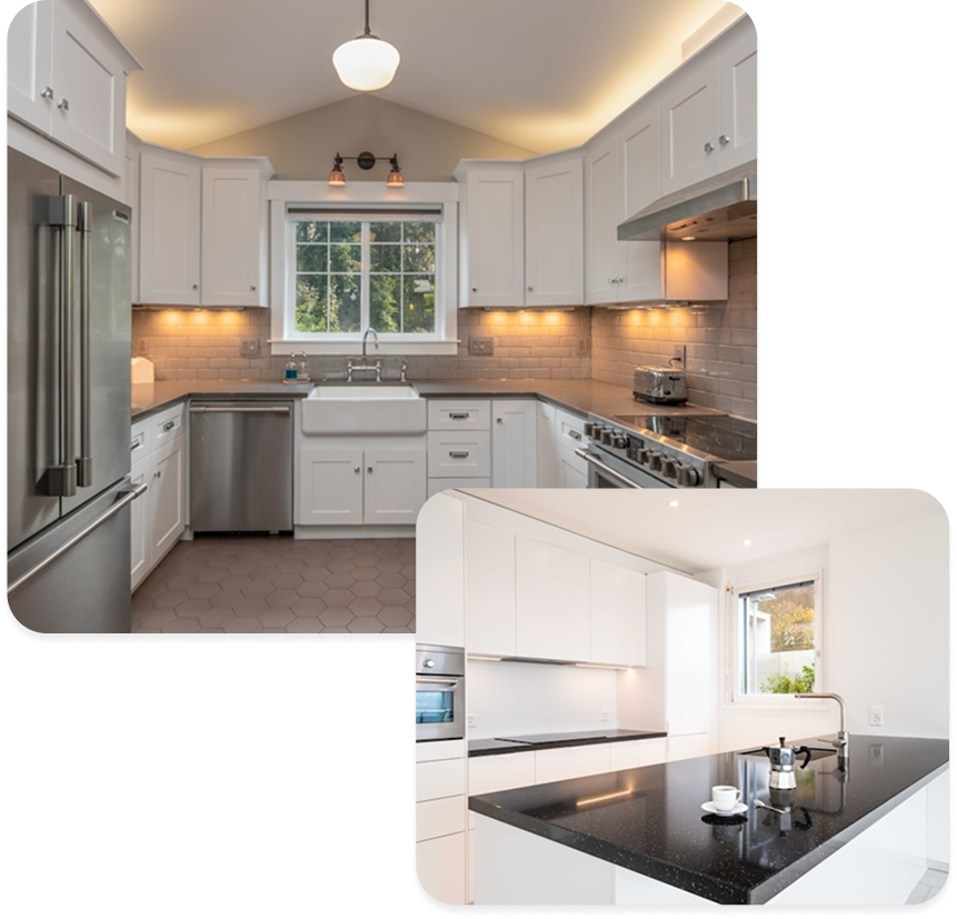 Our designers helps you choose layouts, cabinets, countertops, lighting, and flooring to match your style.